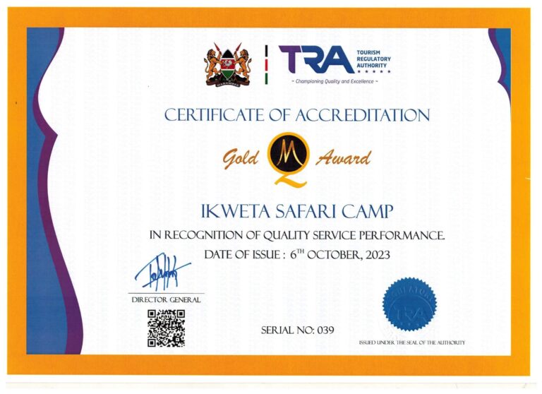 iKWETA Safari Camp is an international class, nationally-accredited Tented Safari Camp, located just outside Meru National Park, 2km from the Murera Gate. It is recipient of a Gold Award from Kenya’s Tourism Regulatory Authority and of many other awards and acclamations.